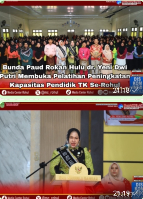 Sejagatnews.com (Rohul) Rambah — Bunda PAUD Rokan Hulu, dr. Yeni Dwi Putri, membuka pelatihan peningkatan kapasitas pendidik bagi pendidik Taman Kanak-kanak se-Kabupaten Rokan Hulu di Aula SMA N 1 Rambah, Jumat (28/11/2025). Kegiatan ini bertujuan meningkatkan kepedulian terhadap perkembangan otak dan konsentrasi anak melalui pelatihan menyenangkan stimulasi otak anak dengan brain GYM dan mindset power.