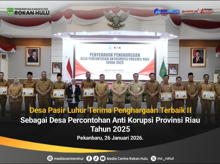 ​Dengan penghargaan ini, Bupati Anton berharap Desa Pasir Luhur dapat menjadi laboratorium pembelajaran bagi desa-desa lain di Rokan Hulu agar tercipta pemerintahan yang bersih, berintegritas, dan berkelanjutan di seluruh Negeri Seribu Suluk.*(Diki Andi)