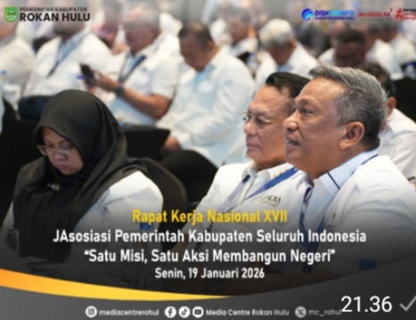 SejagatNews.com (Riau) Batam — Bupati Rokan Hulu (Rohul), Anton, ST, MM, menghadiri Rapat Kerja Nasional (Rakernas) Asosiasi Pemerintah Kabupaten Seluruh Indonesia (APKASI) ke-XVII tahun 2026 di Grand Lotus Ballroom Hotel Aston Batam, Kepulauan Riau, Senin (19/1/2026).
