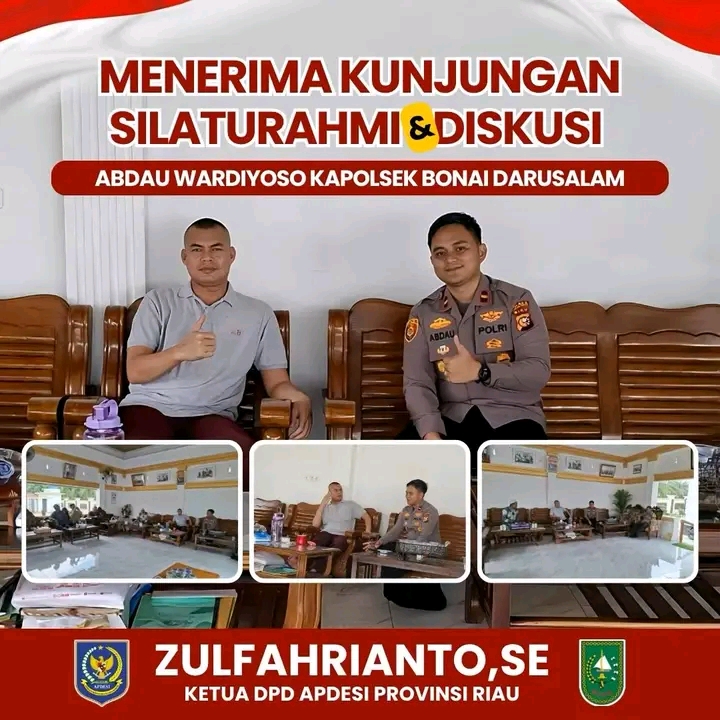 Ketua Apdesi Provinsi Riau Zulfahrianto SE menyambut baik kunjungan tersebut dan mengucapkan terima kasih kepada Kapolsek Bonai Darussalam atas kesediaan kunjungan silaturahmi dan diskusi.