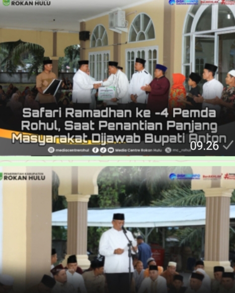 Kunjungan Safari Ramadhan Bupati Rokan Hulu ini menjadi momentum penting bagi warga Payung Sekaki, yang berharap akses transportasi yang lebih layak untuk menunjang ekonomi desa. Suasana kekeluargaan dan syahdu menyelimuti Masjid Raya Al Mubarokah saat buka puasa bersama, menandai harapan baru bagi warga Payung Sekaki di tahun 2026.*(Diki Andi)