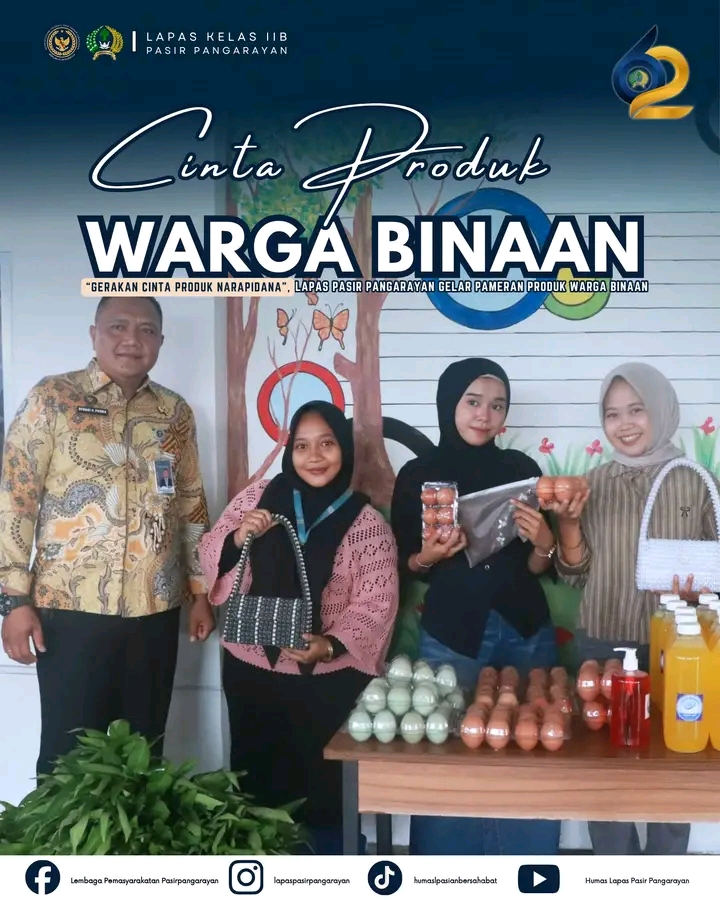 “Pada pagi hari ini kami keluarga besar Lapas Pasir Pengaraian mengadakan bazar hasil karya warga binaan, dimana hari ini kita melaksanakan Gerakan Cinta Produk Narapidana dalam rangka memperingati Hari Bakti Pemasyarakatan ke-62. Mari kita bangga memakai produk hasil karya warga binaan,” ujarnya.